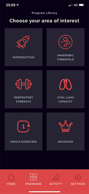 Et lille ventilapparat, der yder modstand, så åndedrætsmusklerne bliver styrket langt bedre end i almindelige åndedrætsøvelser og konditionstræning. Det er altså muligt at træne mellemgulvet og andre muskler mere end ellers menneskeligt muligt, så ens vejrtrækning bliver bedre; man kan holde til mere under pres. Ja tak. Jeg er klar til en test.
